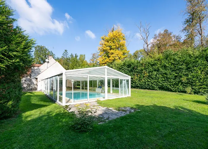 During the stay at Epinoux Villa Esbly, guests can indulge in a hot tub and an indoor pool or visit the Indiana Jones et le Temple du Peril, located a 10-minute ride away. This villa is featuring a terrace with a swimming pool.